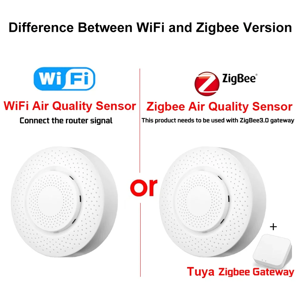 Il est important de ne pas exposer la boîte à air à une forte concentration de gaz organiques ou à des conditions de convection d’air intense. De plus, elle doit être utilisée avec la passerelle Tuya Zigbee.