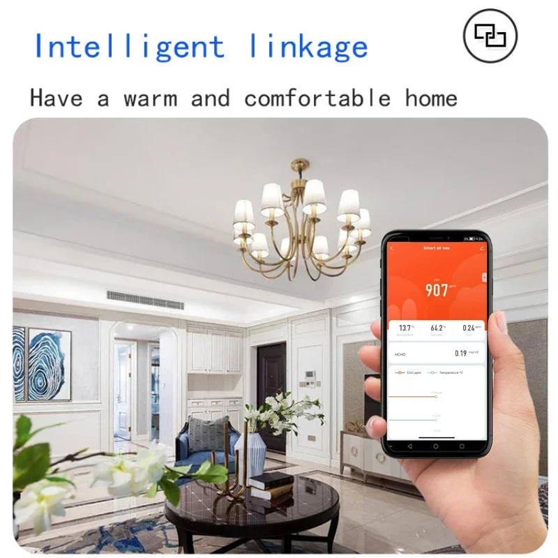 La boîte à air intelligente Zigbee peut détecter le formaldéhyde, les gaz COV, le CO2, la température et l’humidité.