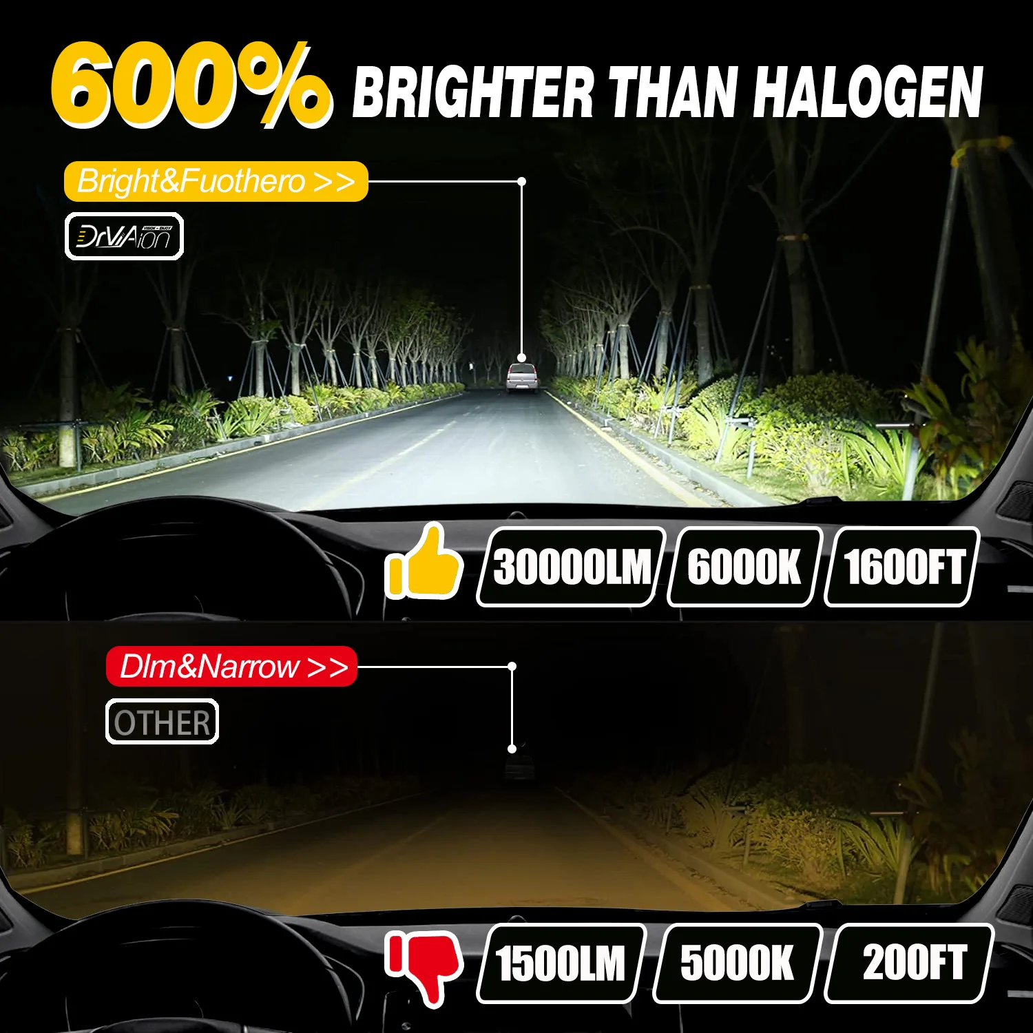 - Haute puissance lumineuse avec 300000LM (2 pièces)